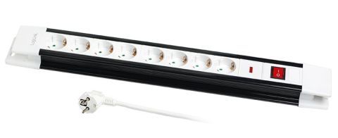 8 Schuko sockets (German Type) With illuminated ON/OFF switch Angled Schuko plug With child protection